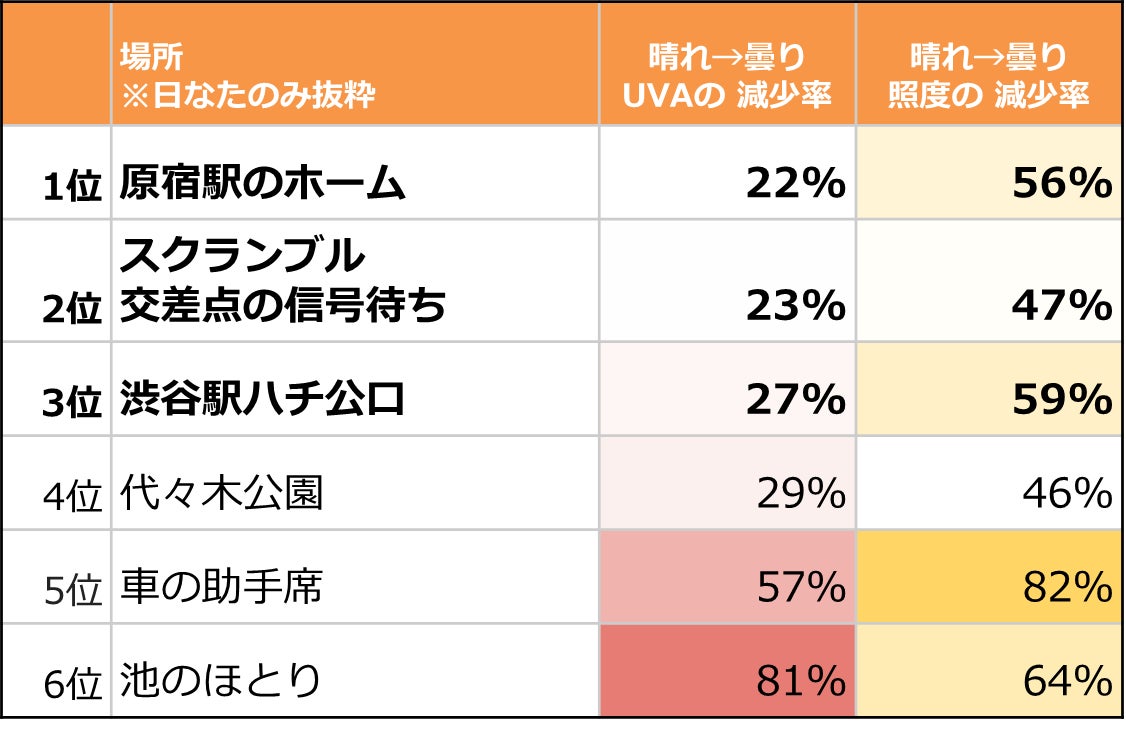 お肌の大敵とされる紫外線。日焼け止めや日傘などで対策している人も多いですが、曇りの日は油断している人も多いのではないでしょうか。紫外線量は晴れの日に多いと思われがちですが、実は曇りの日にも対策が必要です。天候や場所によって紫外線量はどのように変わるのか、紫外線の専門家監修のもと実施した都内での検証結果をもとに、油断しやすい紫外線である、UVAスポットランキングをご紹介します。