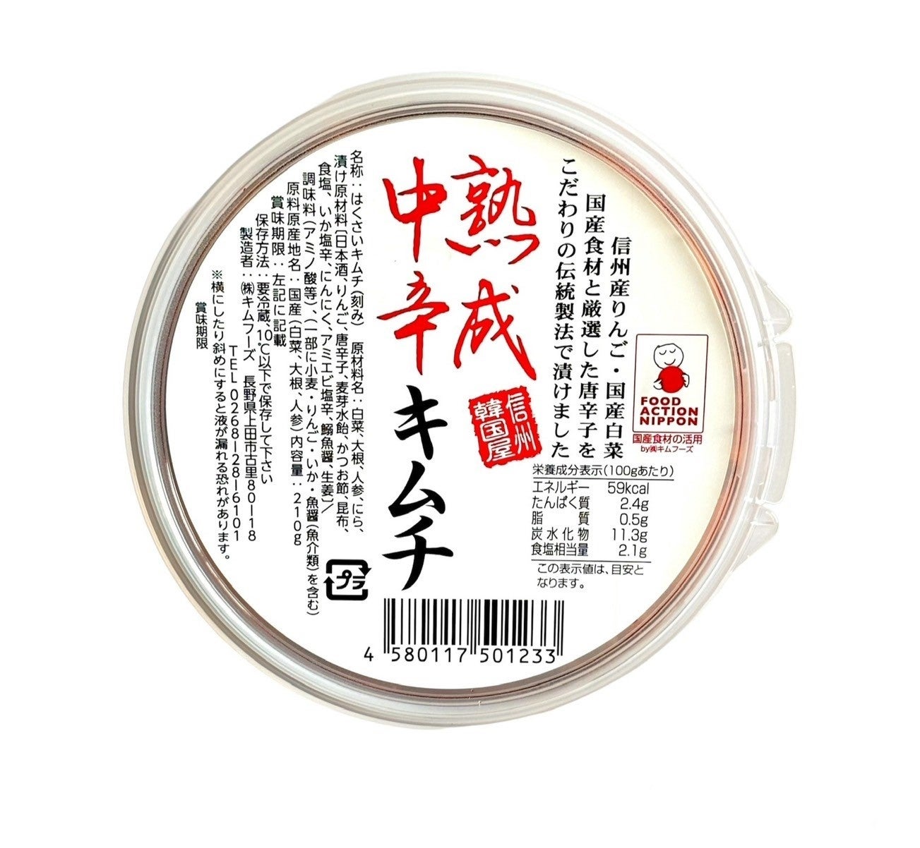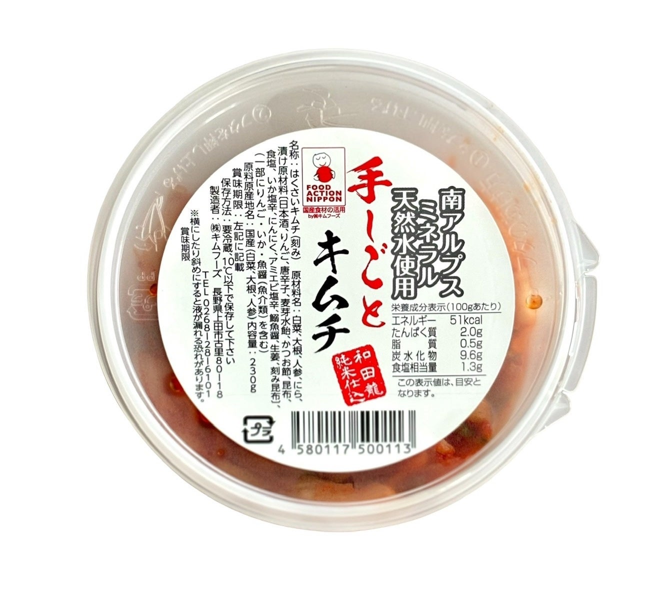 現在は金愼はじめ、息子の金尚謙など14名の社員で、長野県という地の利を活かし、野辺山高原の白菜や長井農園のりんご、上田市にて明治20年から続く和田龍酒造様の日本酒など、素材にこだわった本格キムチを作っています。