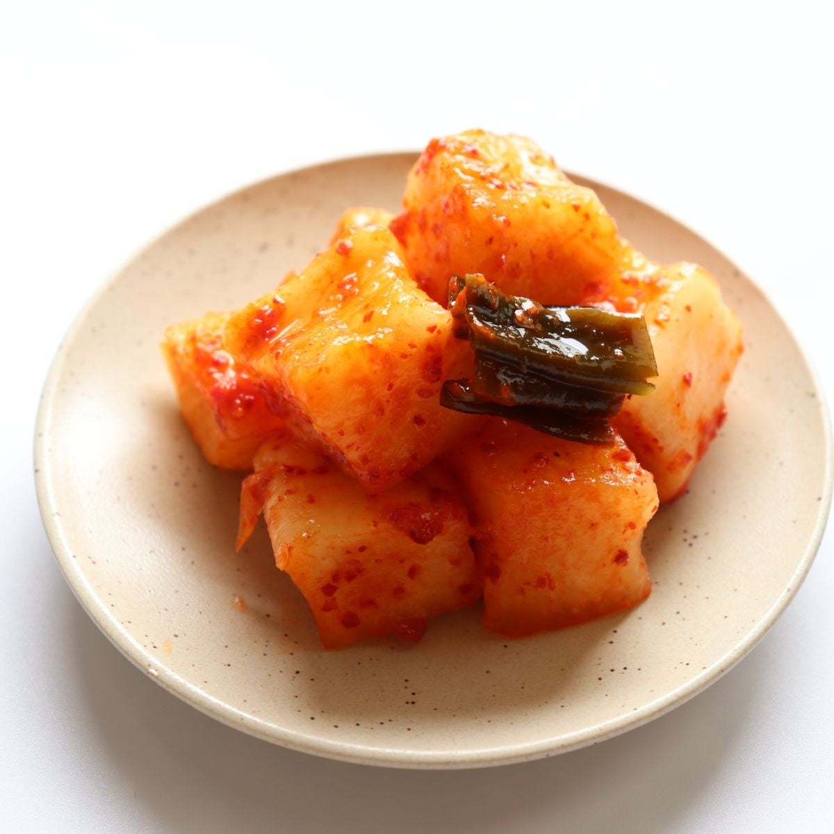 韓国の本格的な味わいは守りながらも、日本人にも、そして子供にもご年配の方にもお召し上がりいただけるよう、日本の伝統の味と韓国の伝統の味を掛け合わせたキムチに仕上がっています。