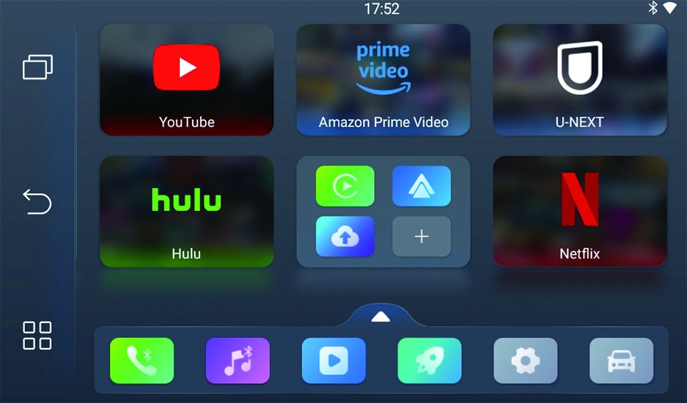 YouTube、Prime Video、Netflix、Hulu、U-NEXTの5つの動画がインストール済