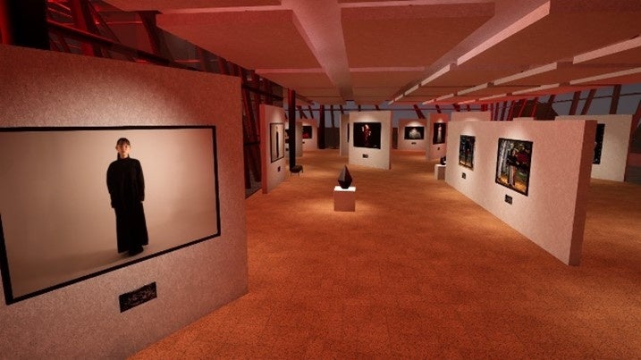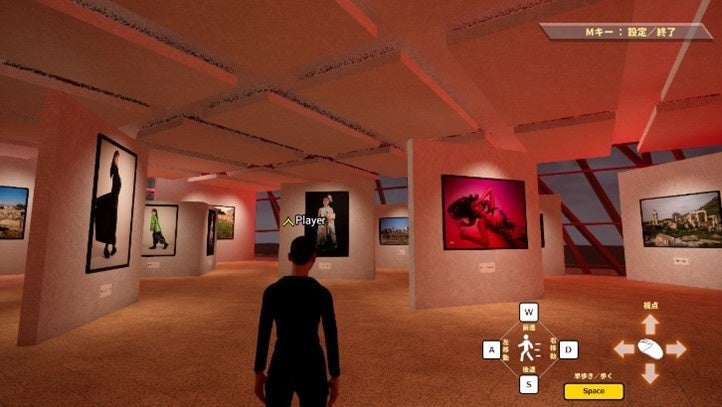 1Fと2Fにギャラリースペースがあり、1Fは写真展示30点。2Fは映像展示10点、写真展示10点可能。2フロアの大規模な展示会を開催できるバーチャル空間が「J-Gallery」 です。
