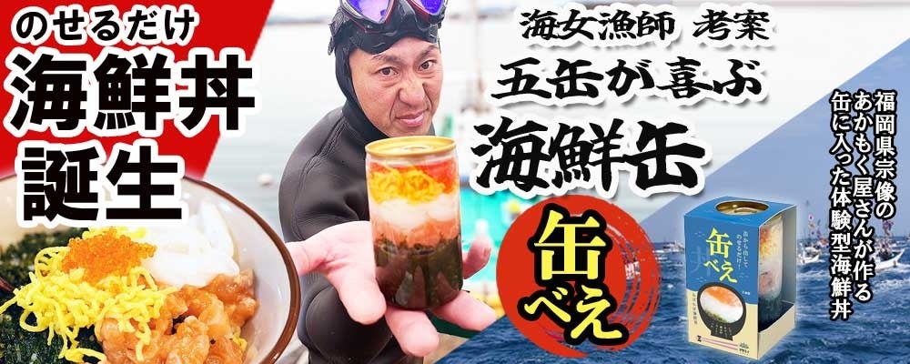 海女漁師が経営する株式会社マサエイ水産加工(福岡)は、海の幸で笑顔になっていただきたいと願い、のせるだけで手軽に食べられる海鮮丼「缶べえ」を発売しました。