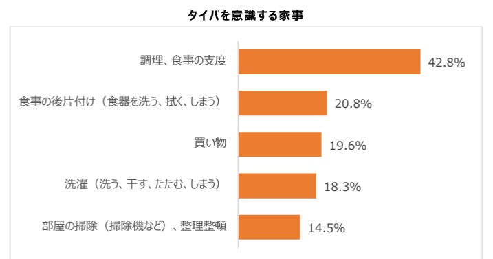 出所:「家事」への意識についてのアンケート調査 タイムパフォーマンスを意識する家事の1位は「調理・食事の支度」、日本生活協同組合連合会