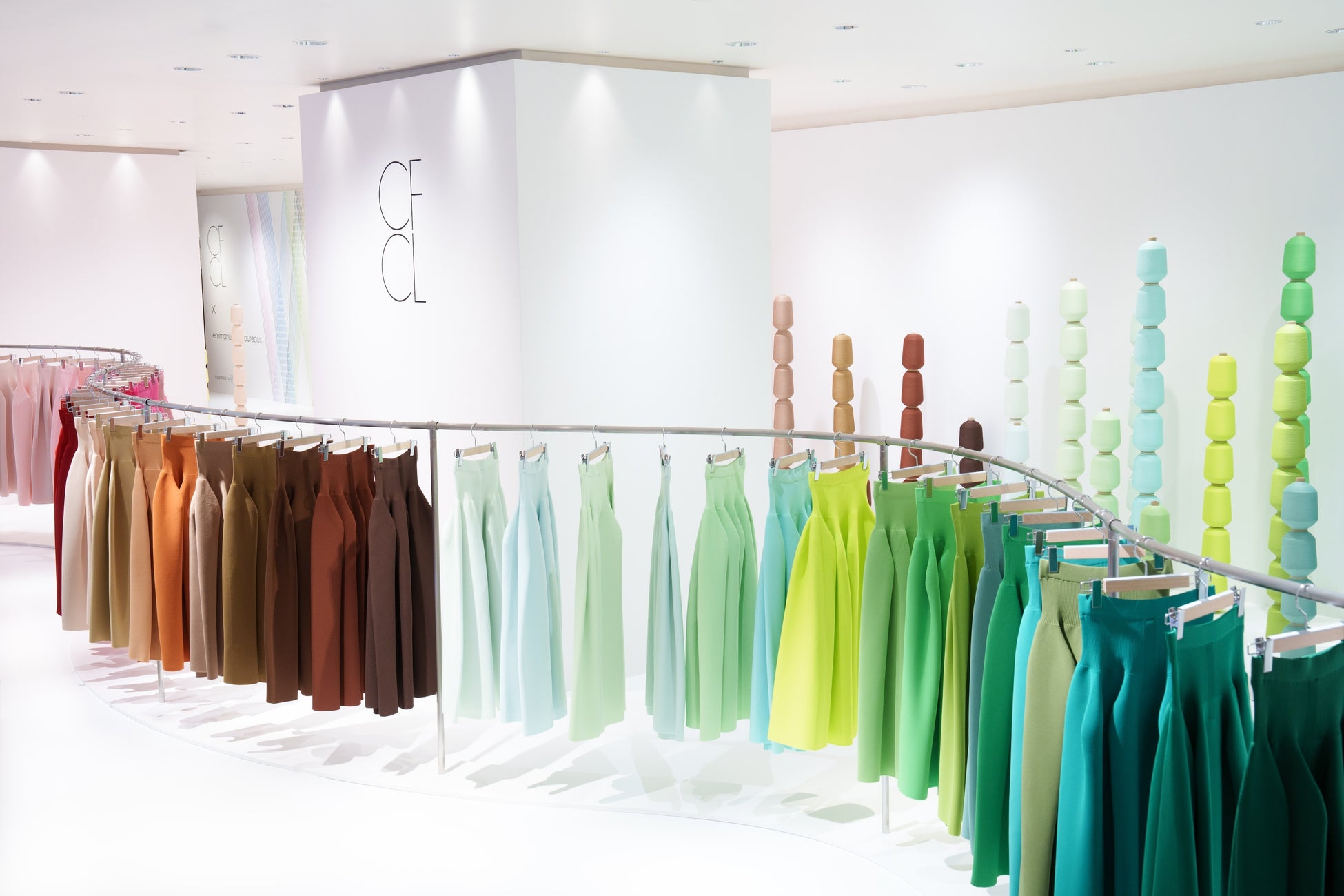 CFCLは、期間限定イベント「100 colors of skirts emmanuelle moureaux × CFCL Supported by ECOPET®」を開催中。会場のインスタレーションは「100 colors」を手がける建築家/アーティスト/デザイナーのエマニュエル・ムホー(emmanuelle moureaux)氏にディレクションを依頼し、100色のグラデーションによる彩りを纏った特別な空間へとゲストをお迎えします。