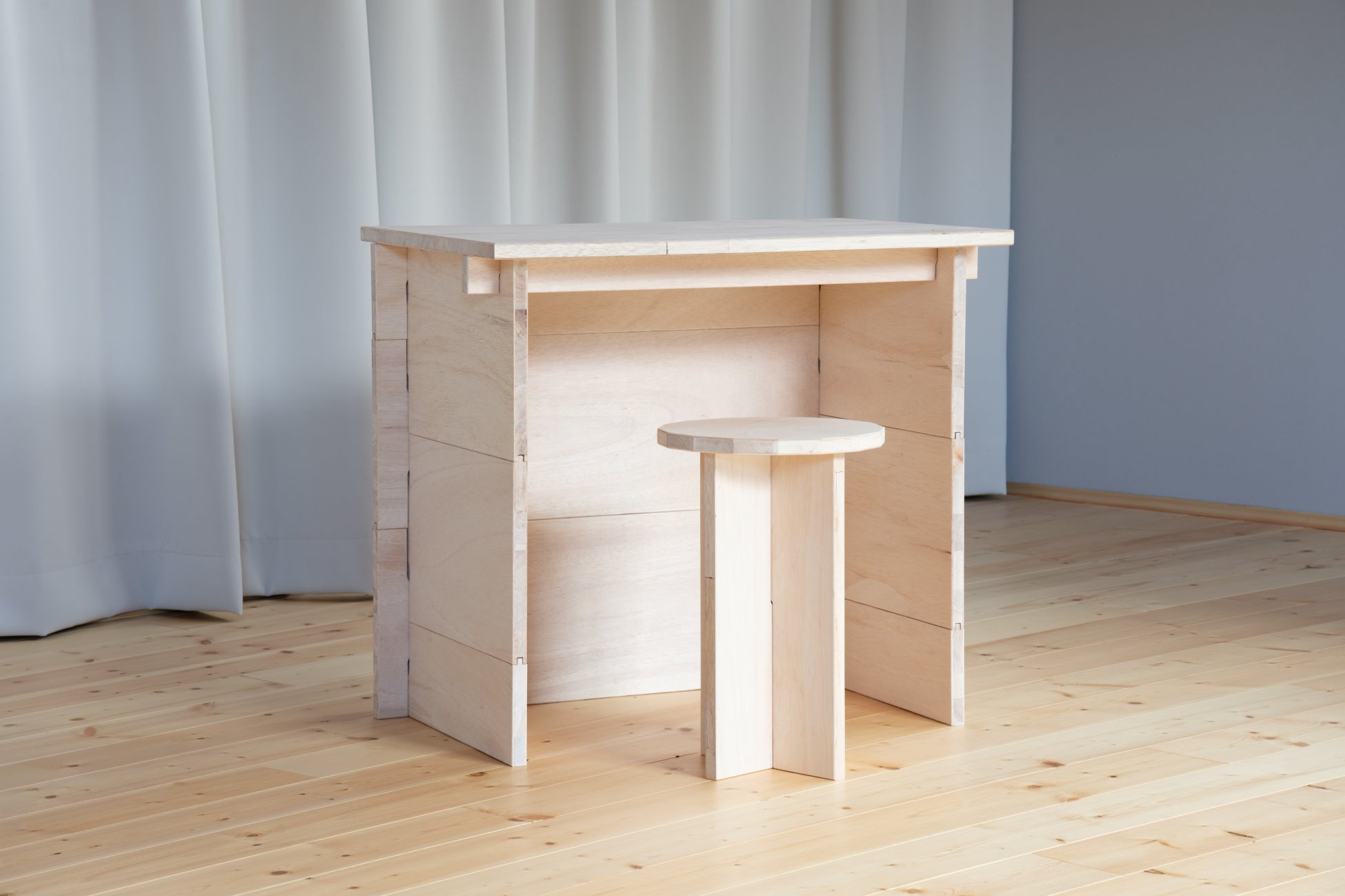 木の板を組むだけで用途自在のワークスペースが完成