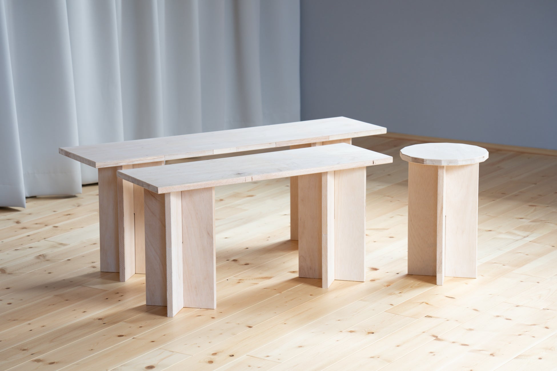 KUMIGUでは、「組み」をコンセプトとした家具も販売しています。デスク、スツール、ベンチシェルフといった各アイテムは、ワークスペースでの作業を便利にするだけでなく、お部屋を彩るインテリアとしてもご活用いただけます。
