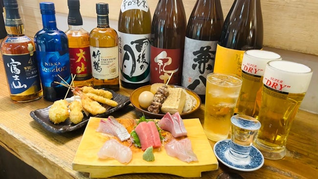 ドリンクは、生ビール、地酒、焼酎、地ウィスキー、ワインの豊富な取り揃えだけでなく、特に国産ウィスキーのハイボールについては、居酒屋での取り揃えとしては国内で類を見ないラインナップの多さ!