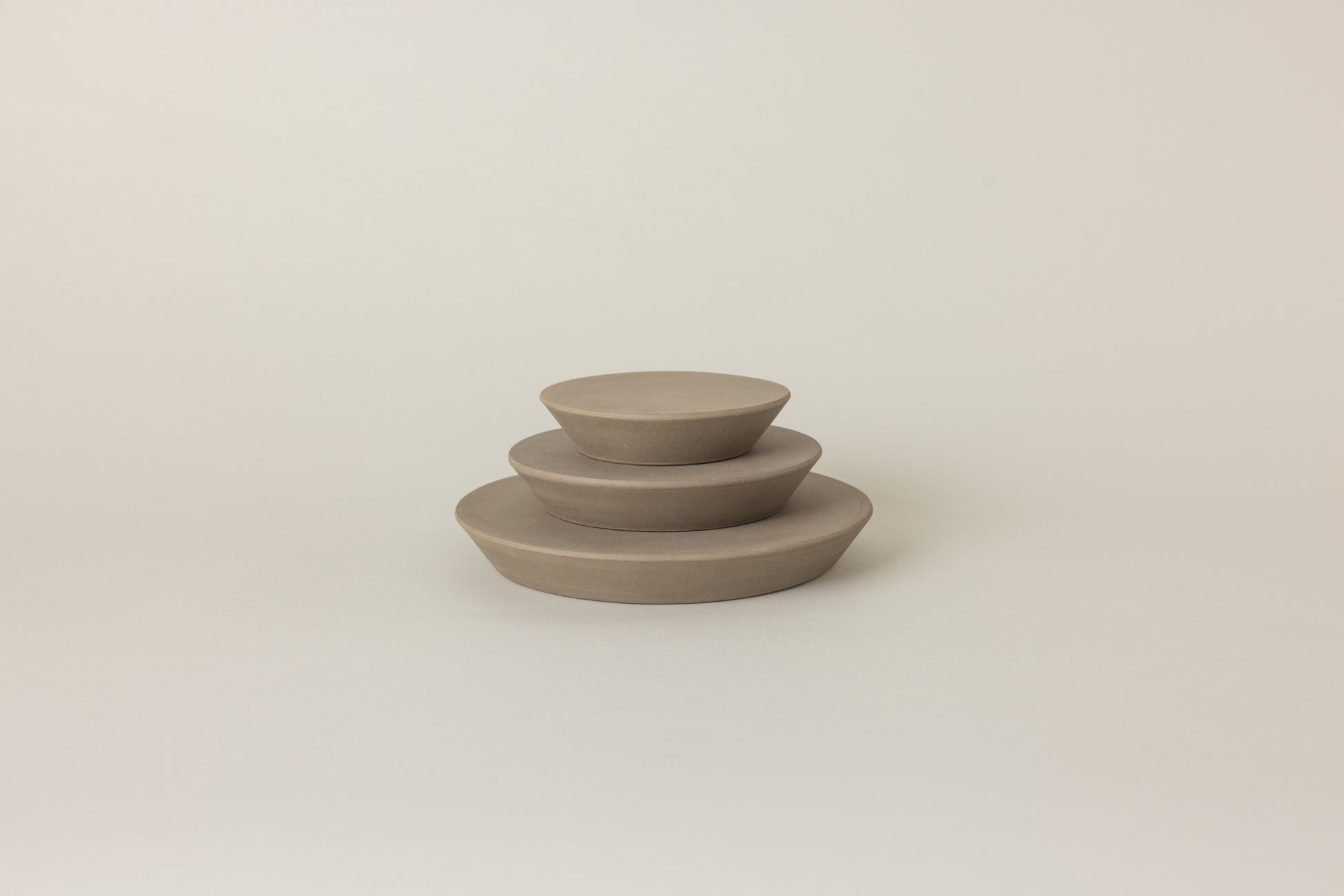 一見瓦とは思えない、素朴で力強くやわらかな土の気配をまとう「NATIVEs」のアイテムは、自然の風景をイメージしたシンプルな形で6商品、サイズ違いも含め全10種をラインナップ。いずれも特定の使い方は設けておらず、手に取る方のアイデアや感性で使い込んでいただけます。
