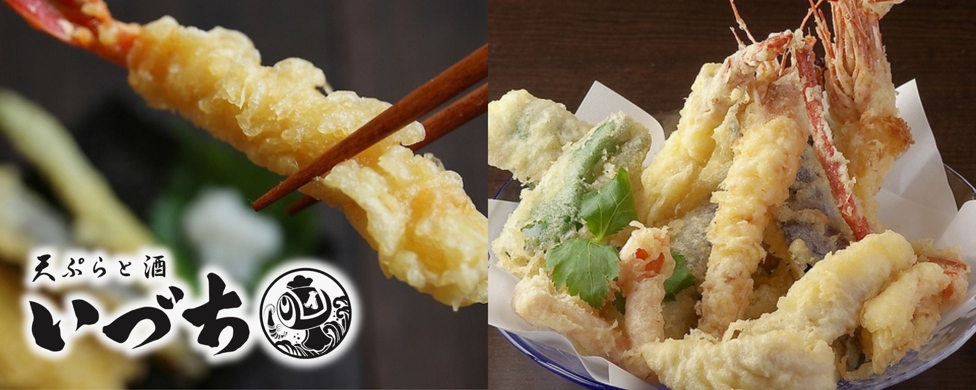 『天ぷらと酒 いづち』では、魚介類を使用した天ぷらを20種以上ご用意しております。他にも、旬の食材をとり入れたおばんざいで、季節を感じて頂きながら最幸の酒のあてとして楽しんで頂けるお店です。