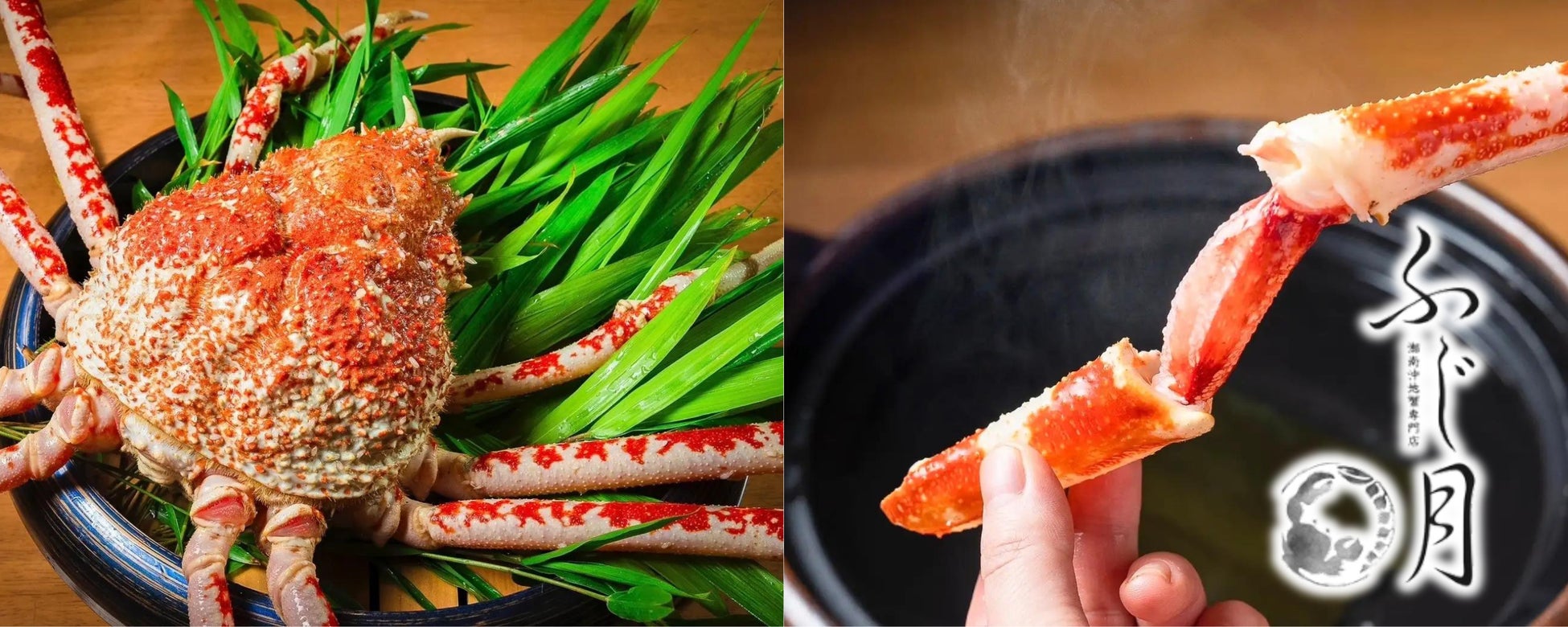 神奈川県・湘南沖にて水揚げされた、タカアシガニ・イバラガニの専門店『ふじ月』。 県内で、蟹専門漁師は一軒のみ、そこで獲れた貴重な地蟹を、活きた状態で調理いたします。 刺身、しゃぶしゃぶ、蒸しガニ、焼きガニなど様々な調理法で、味わいの変化を存分に味わっていただけるようなコースを組み立て、ご提供致します。