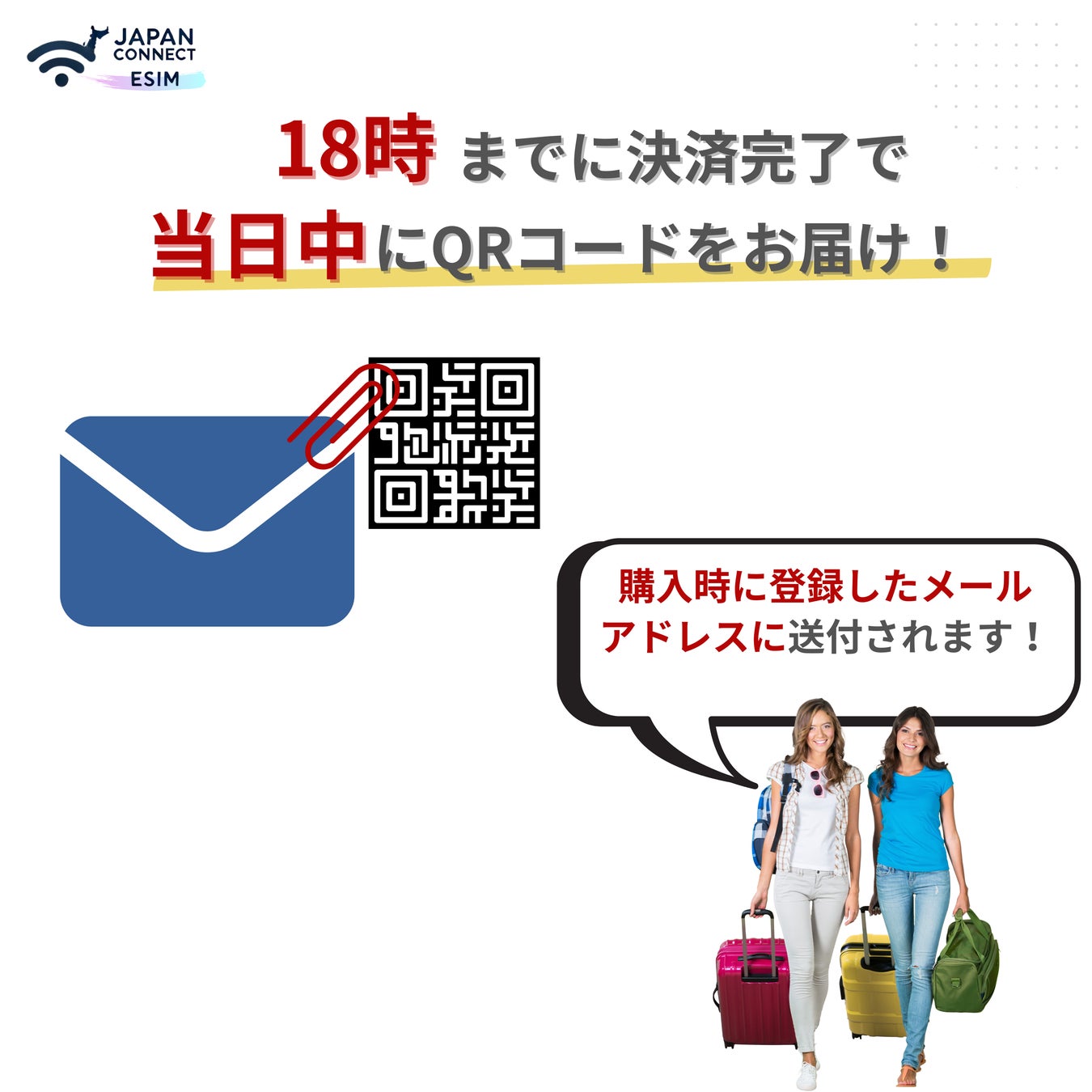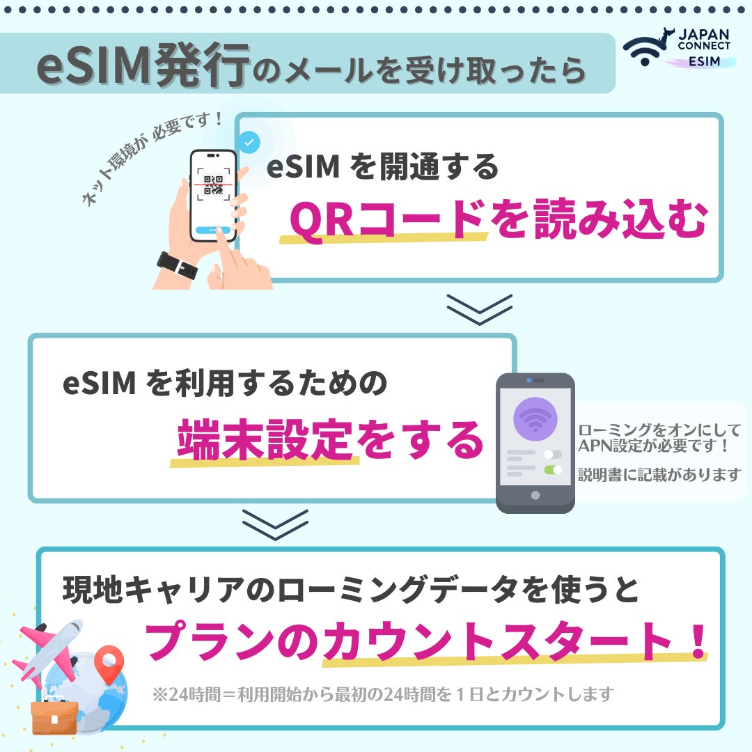 データプラン購入後に送られるQRコードを読み取り、現地でローミングをONにすれば開通します。