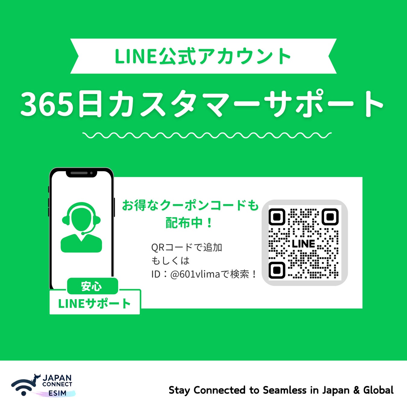 JapanConnect eSIMは365日対応のLINEカスタマーサポートで、海外旅行がもっと楽しく、快適な時間になるようにお手伝いします!