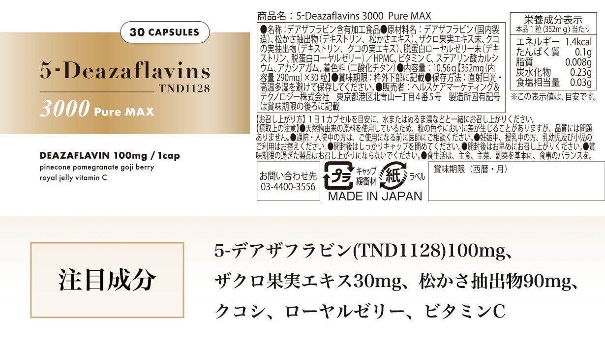 ヘルスケア&マーケティングテクノロジー株式会社(本社:東京都港区)が開発し、Makuakeにて開始初日で目標330%達成中の「5-Deazaflavins 3000 Pure MAX 」が、追加の販売を開始しました。