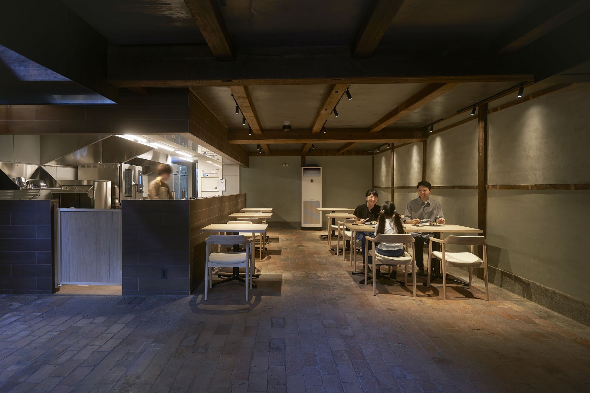 網元であった旧戸田家住宅の工場を活用したレストラン潮香は、当時の面影を今に伝えるレンガの床とエントランスの網階段が象徴的な空間となっています。