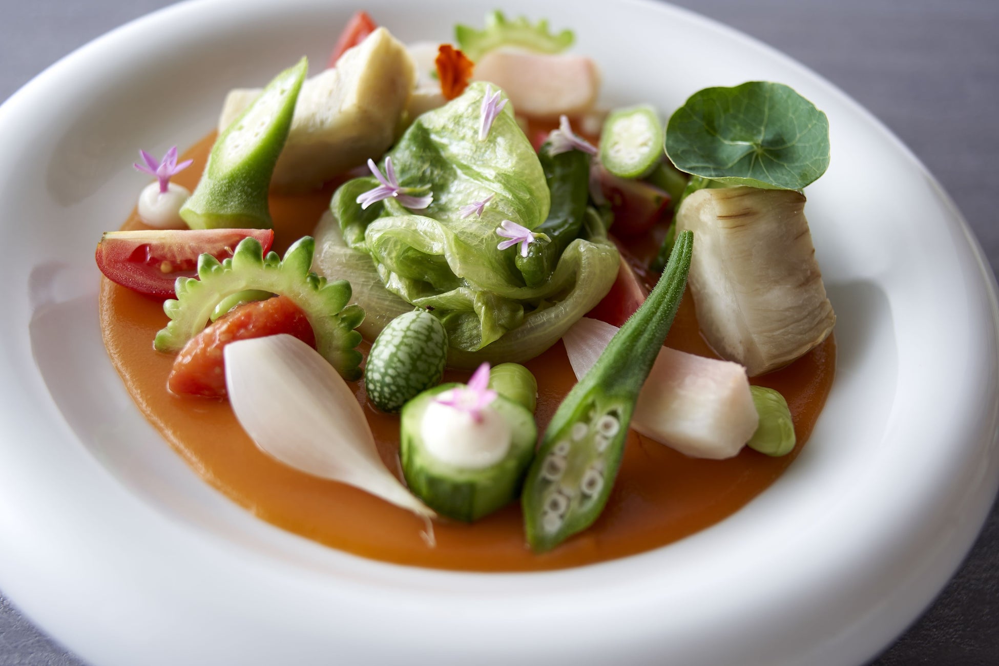 ランチは¥3,800(3皿:平日限定)と¥5,500(5皿)のコース、ディナーは¥13,000(8皿)のコースをご用意しております。海と山の恵みを惜しみなく使った、ここ広川町でしか味わうことのできないお料理をご提供致します。(価格は全て税込)