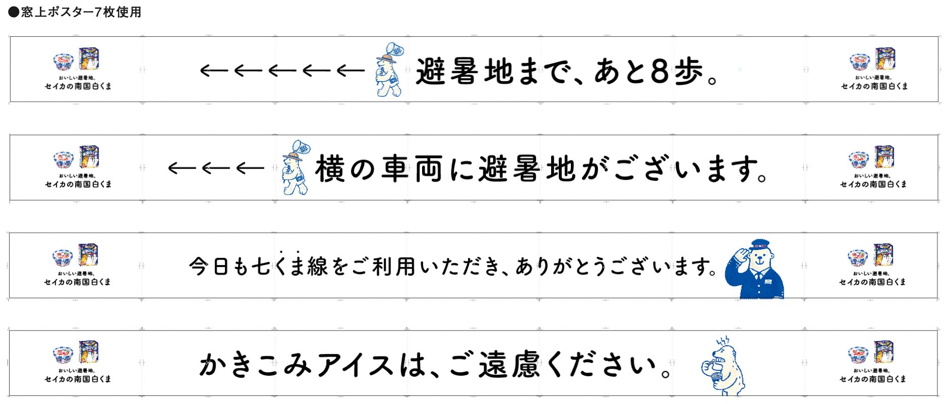 全国のスーパー・コンビニエンスストアに「南国白くま」を展開するセイカ食品株式会社(鹿児島県鹿児島市/代表取締役社長 玉川 浩一郎)は、福岡市地下鉄七隈線にて、2024年8月1日(木)から8月21日(水)の期間で大規模な電車内広告を展開いたします。