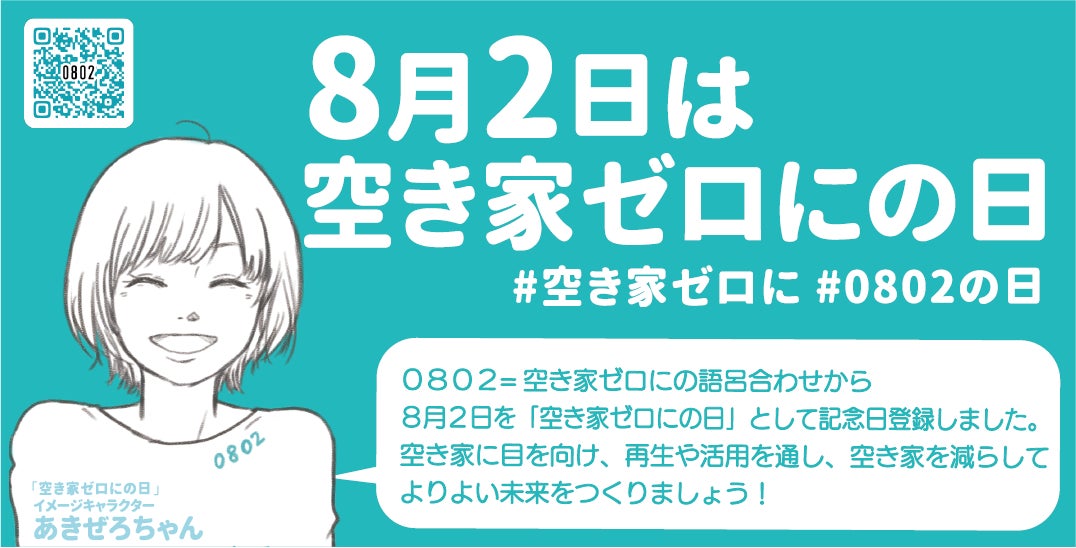 全国的に増え続ける空き家に目を向け、再生や活用を通し空き家を減らし、よりよい未来をつくるために、空き家買取専科では、 「0802=空き家ゼロに」の語呂合わせから8月2日を「空き家ゼロにの日」と記念日制定をし啓発活動をおこなっています。