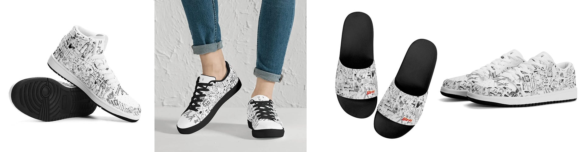 漫画シューズでは、厳選された名シーンを元にデザインされたシューズを提供しています。各シューズには、様々なジャンルの漫画が描かれており、あなたが愛する物語を見つけることができます。お気に入りの物語と共に、日常を彩りましょう。