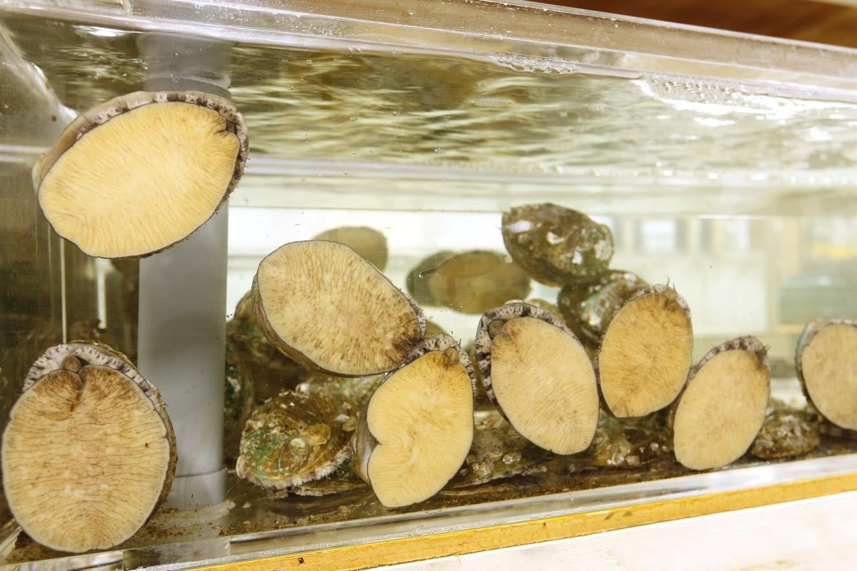 ワカメを食べさせ、ストレスの無い環境で育ったアワビは柔らかで旨味が豊富です。