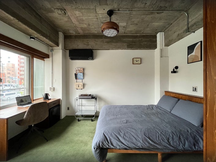 「NO SERVICE HOTEL」は古いビルをリノベーションして20~50㎡とスーツケースを広げられる広さを担保しながらも、価格帯をできるだけ抑えて、「このままここで暮らしたくなる空間」のような心地よくリラックスできるような空間を提供しています。
