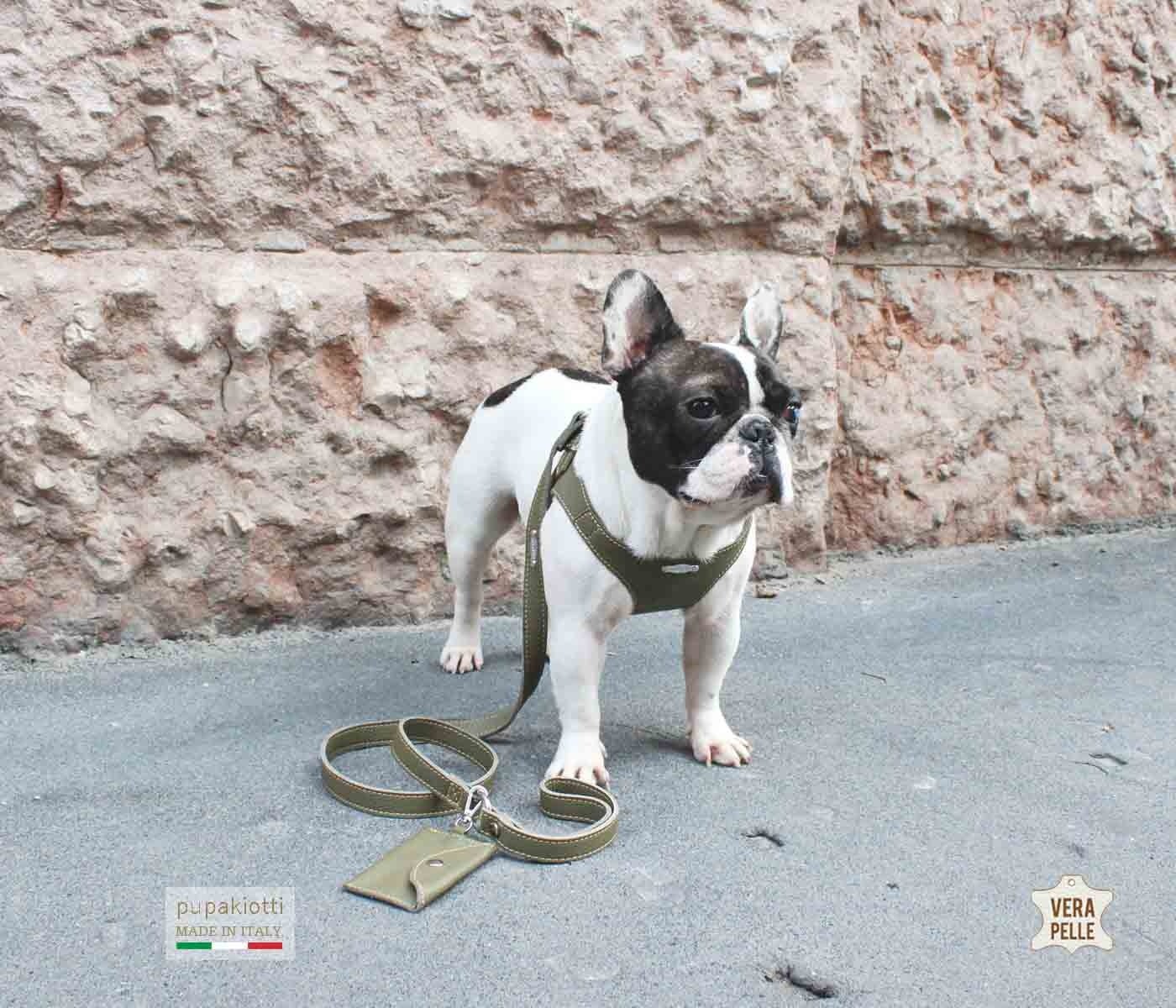 Pupakiottiのハーネスは、デザイン、素材、製作、すべてにおいて『Made in Italy』を貫いています。使用されている素材はイタリア100%の本革(グレインレザー)で、驚くほど軽量で柔らかい手触りです。すぐに馴染み、通気性に優れた高品質な本革は、犬の肌に優しく、皮膚が敏感な小型犬に最適です。また、金具には厳選されたイタリア製のメタルアクセサリーを使用しており、すべてにおいて品質への妥協はありません。