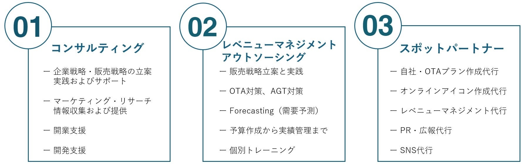 以前からご相談いただくことが多かったレベニューマネジメント業務についてClavis Partners社と協業させていただくことでサービス化させていただきました。両社の強みを活かしクオリティの高いサービスをご提供できるように努めていきます。宿泊施設様の身近な伴走者として邁進していきます。