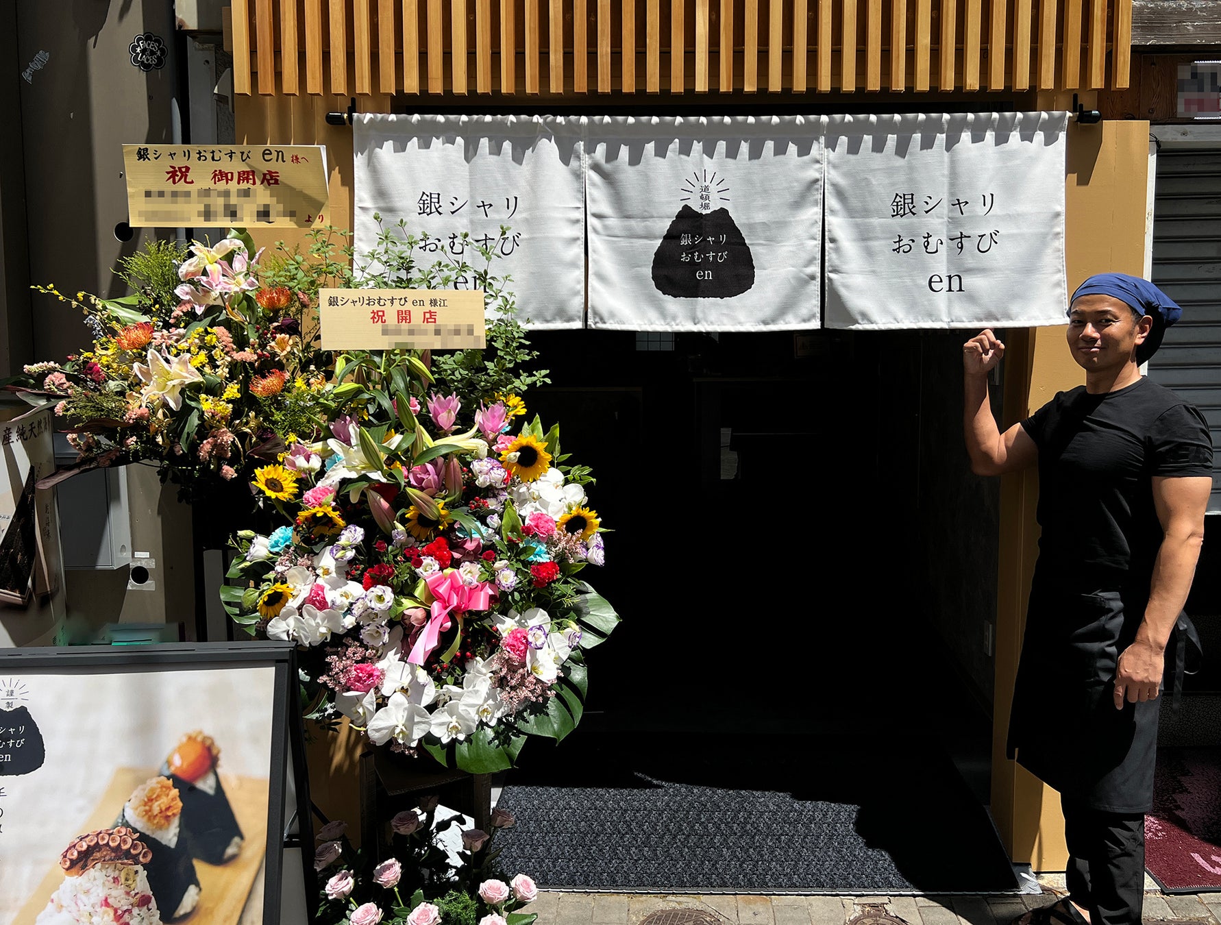 小川氏の技術指導を受け、2024年7月29日(月)に大阪の代表的な繁華街で国内外からの観光客で賑わう大阪ミナミのど真ん中「道頓堀商店街」に『銀シャリおむすび en』をオープンしました。