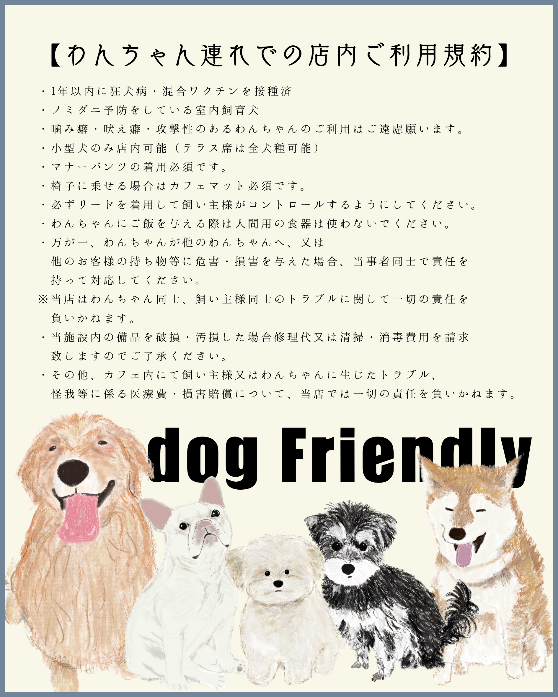 ・店内わんちゃんOK(仕切りあり。わんちゃん連れ専用部屋なので安心してお楽しみいただけます)