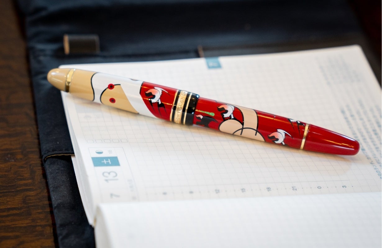 中古品の万年筆にアーティスト大河 紀デザインで、日本の伝統工芸である蒔絵を施した一品です。