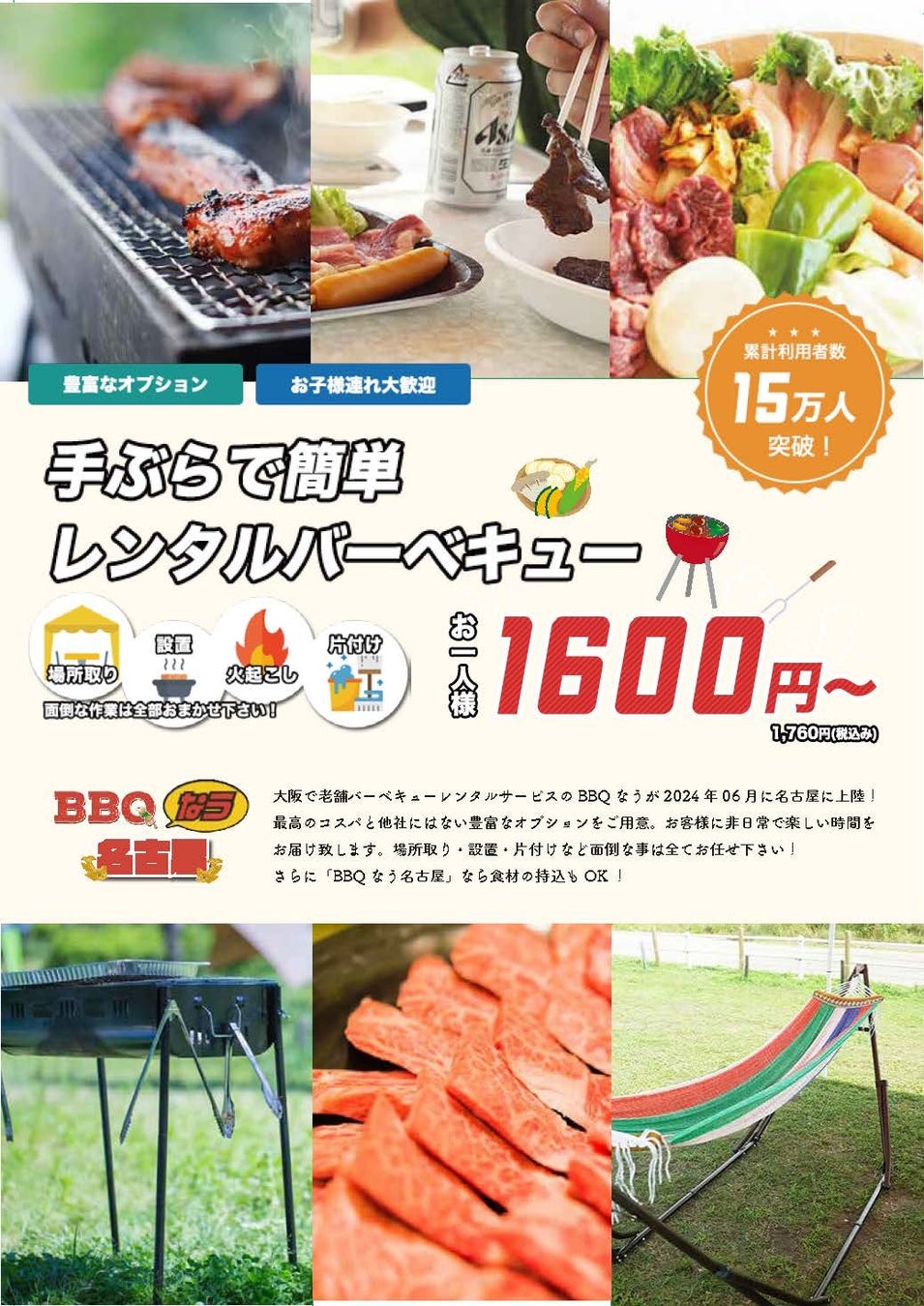 累計利用者数15万人突破のバーベキューレンタル「BBQなう」が名古屋に初上陸