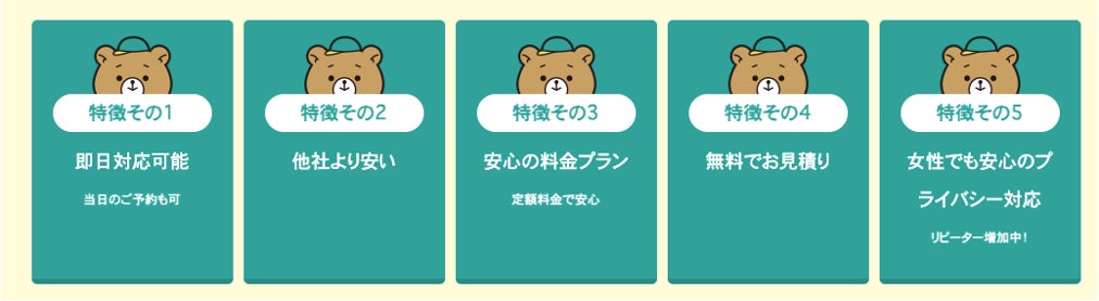 「くまのて」は、東京都を中心に即日対応・当日対応も可能な不用品回収サービスです。追加料金一切なしの定額プランがあるため、初めての方でも安心してご利用いただくことが可能です。さらに、補償や保険にも力を入れており、個人情報についても徹底した管理のもと運営しています。女性のお客様が半数以上、20代から60代の方まで幅広くご利用いただいています。