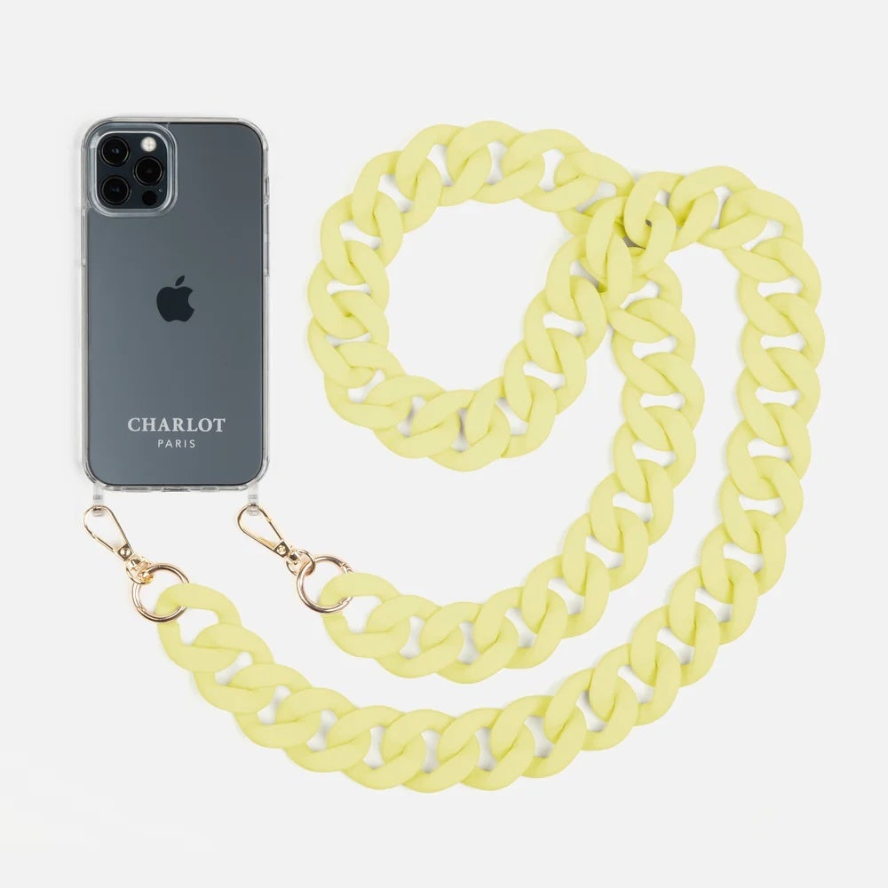 マットな質感とシンプルなデザインを特徴としています。この商品はスマホだけでなく、鞄や財布などでも使用することができます。軽量でありながらも高級感があり、快適な装着感を提供します。長さを自由に調整できるため、長時間の着用も可能です。製造はパリの工房で1つ1つ手作業で組み立てられています。さらに、6種類のバリエーションからお好みの1本を選ぶことができます.