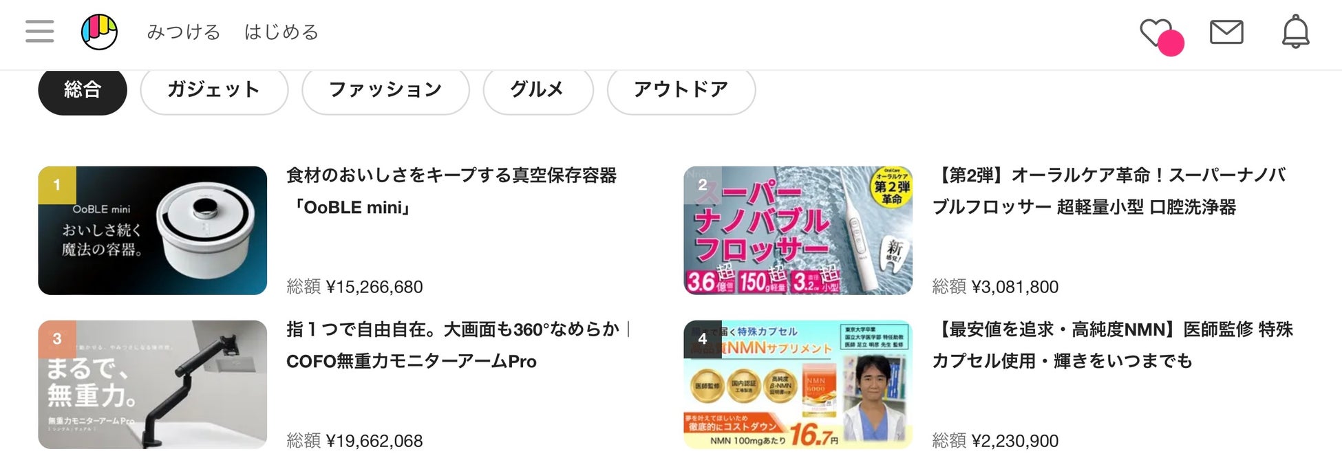 購入金額400万円、達成率800%、総合ランキング4位獲得に加え、NMNサプリメントのMakuake史上1位のコストパフォーマンスとなりました。(※自社調べ)