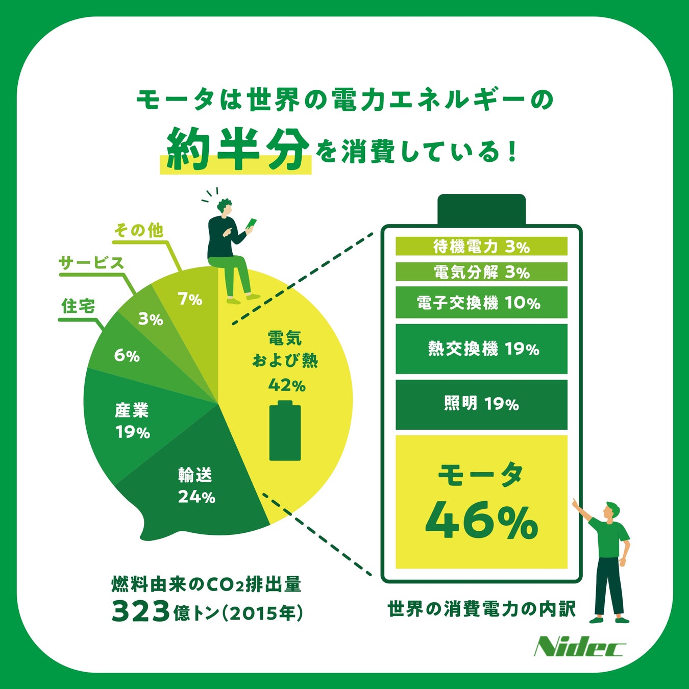 (1)世界の電力消費の46%は、モータによるもの