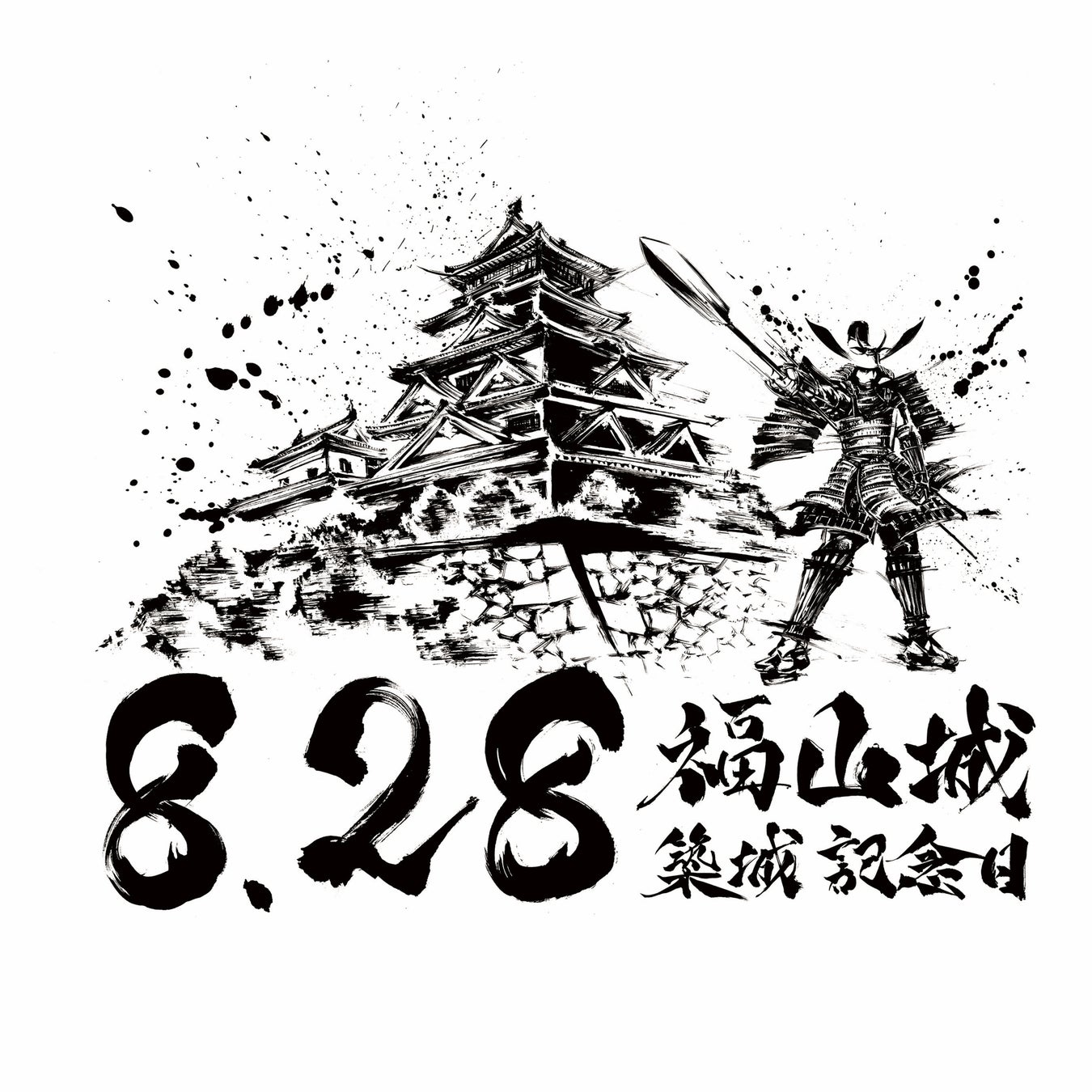 築城した日を記念日登録したのは、福山城が全国で初めてとなります!これを記念して、福山城築城記念ロゴを作成いたしました。(墨絵師『御歌頭』作)