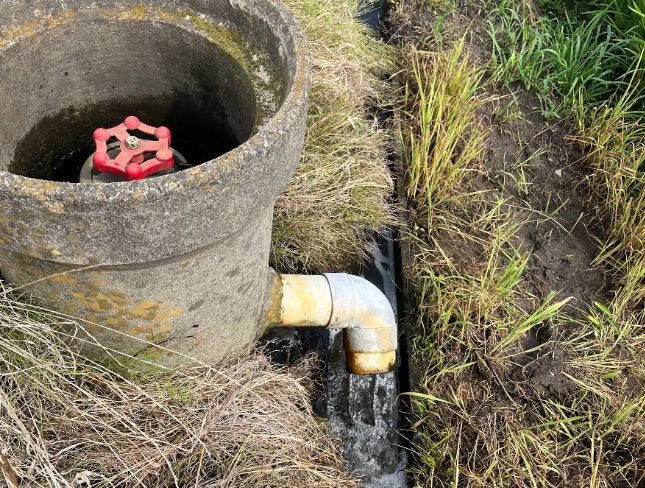 ・中干しの開始日に、閉じた取水口を撮影した写真及び開いた排水口を撮影した写真。