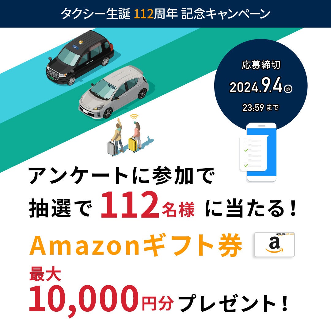 一般社団法人 兵庫県タクシー協会(所在地:兵庫県神戸市、会長:大久保恵美)では、タクシー生誕112周年を記念して、抽選で112名様にAmazonギフト券が当たるタクシー・ライドシェアの利用に関するアンケートを実施しています。