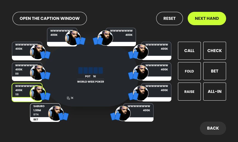 JUNS POKER PROは、各プレイヤーが何のハンドを持っているのかをリアルタイムで表示させる配信システムです。