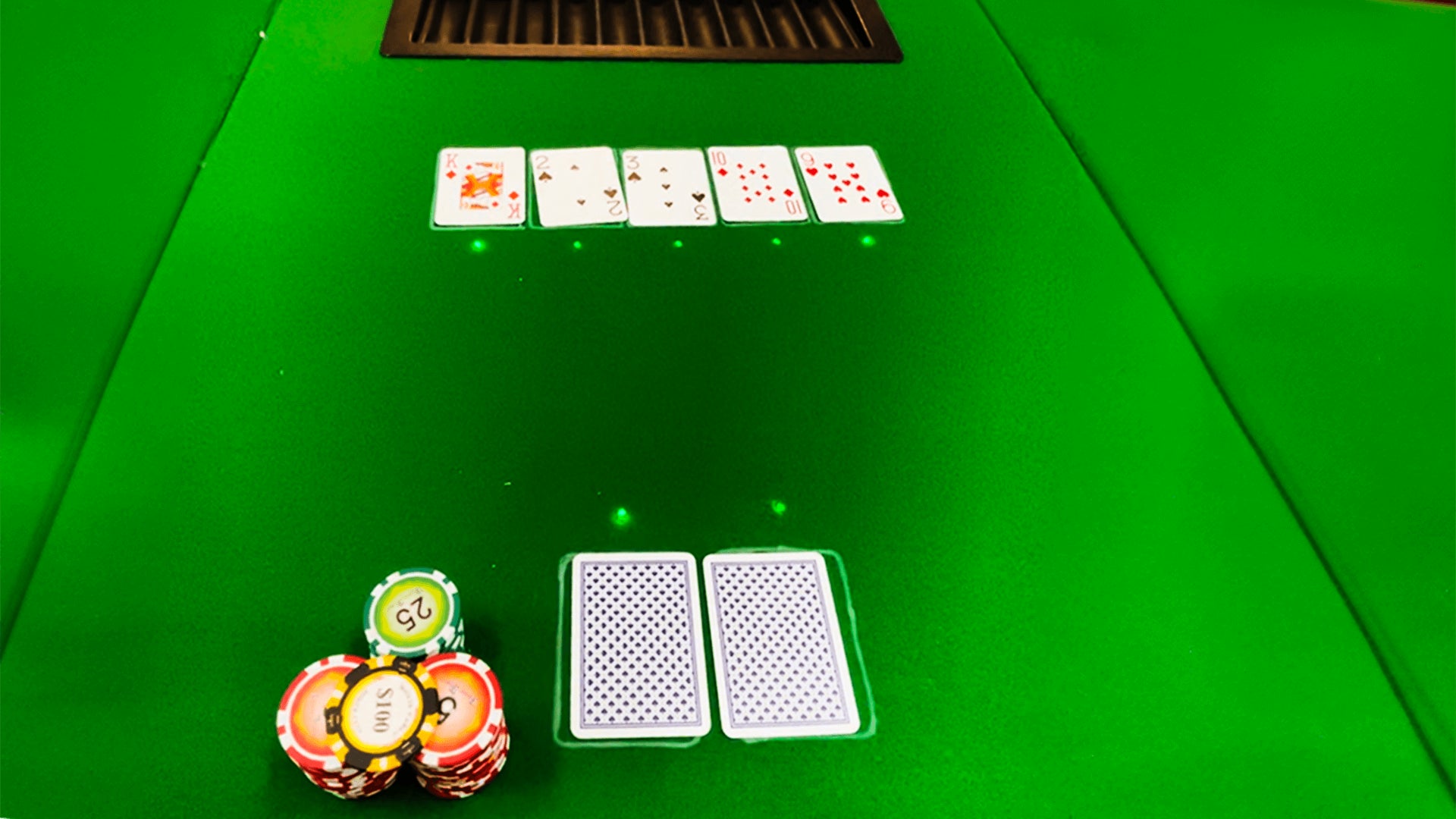RFIDのトランプを、各プレイヤーの手元に設置したセンサーで読み込みます。