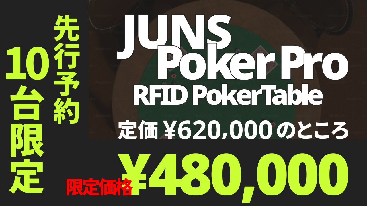 オリジナル映像機器を開発・販売するJUNS株式会社(本社:東京都中野、代表取締役:渡辺悠人)は、日本発のRFIDポーカー配信システム「JUNS POKER PRO」の先行予約を開始いたします。