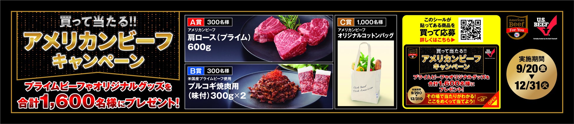 プライムビーフやグッズを合計1600名様に!買って当たる!!アメリカンビーフキャンペーン