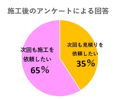 コノイロで施工後にお客様からいただく満足度アンケートにおいては、次回の工事でも当店と繋がりを持ちたいと思ってくださるお客様が100%となっています。