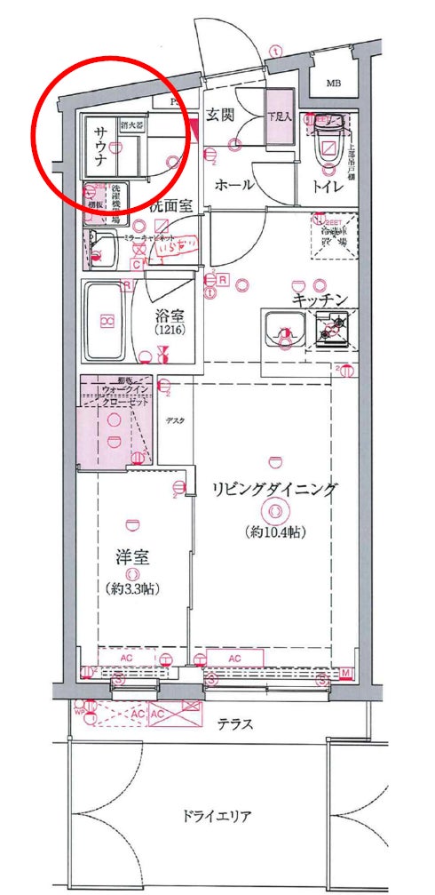 サウナ利用後、クールダウン(冷水浴やシャワー)のためのユニットバスをサウナすぐそばに設置するなど動線に配慮した設計としています。またサウナ付き住戸のみ独立性を担保したドライエリア(専用使用部)があり、外気浴を楽しむことも可能です。またドライエリアには専用の水栓も設置してますので冷水でシャワーを浴びることも可能です。