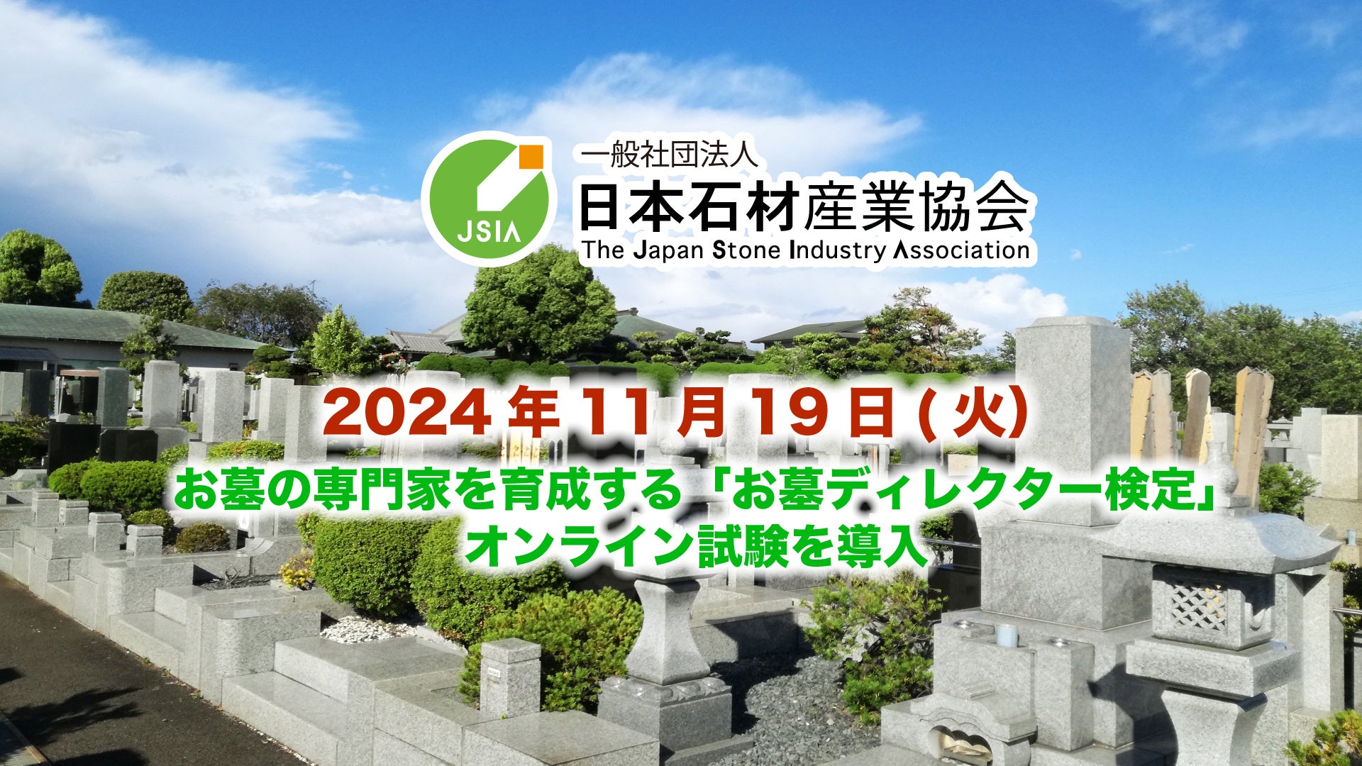 一般社団法人日本石材産業協会(所在地:東京都千代田区、代表:森田 浩介、以下「石産協」)は、2024年11月19日(火)に実施される「第20回お墓ディレクター検定試験」より、2級受検者を対象にしたオンライン試験を導入することをお知らせいたします。