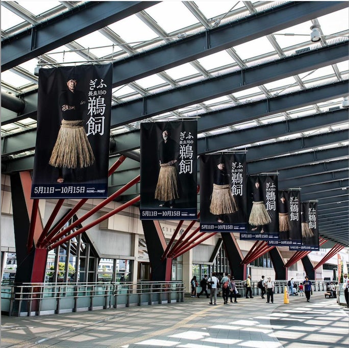 PASSING on PROJECTでは2024年鵜飼開幕に合わせて岐阜駅前の大型フラッグ、鵜飼カード