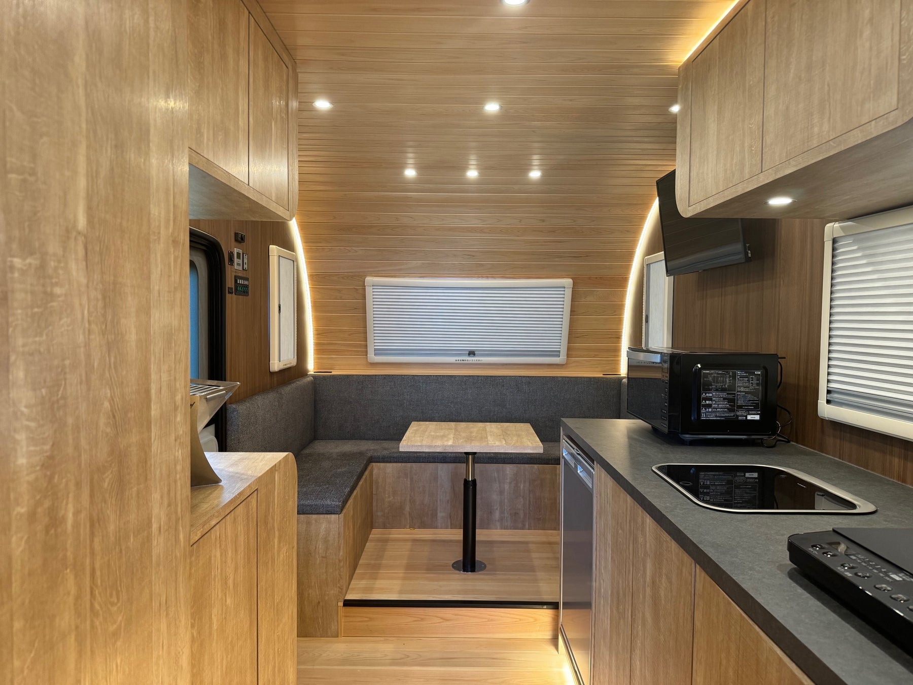 コンセプトモデルのキャンピング仕様車両は内装にヒノキを用いて、住宅同様の落ち着く空間を作り上げました。アフターサービスは全国各地のSOREXブランド取扱店にお任せください。