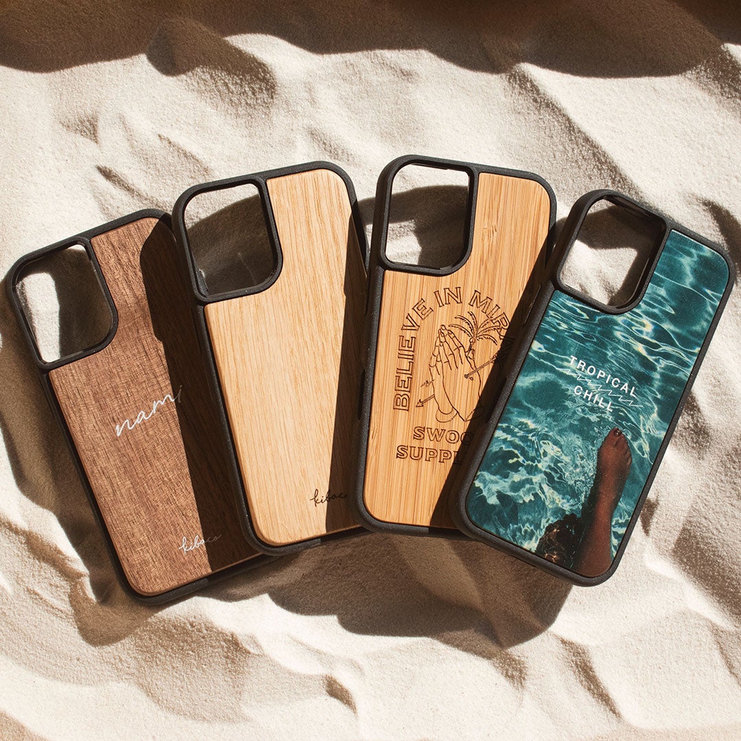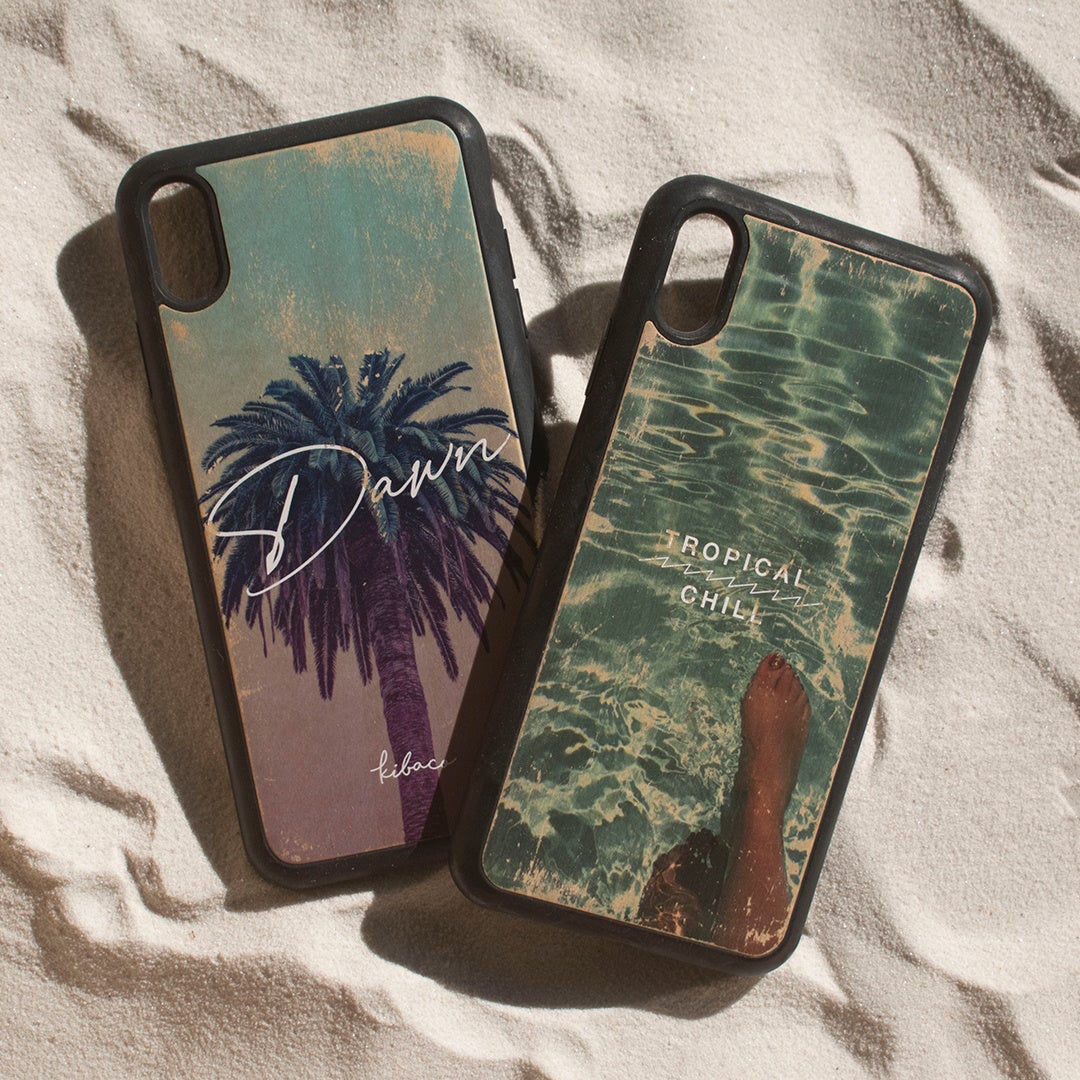 70年以上続く建具屋の工房を引き継いで作る「kibaco」の商品は、バンブーやウォルナットなど様々な樹種を使ったウッドiPhoneケースや白樺のフォトパネル、バンブーキータグなど、木のぬくもりをまとったオリジナルアイテムです。彫刻や鮮やかなフルグラフィックを乗せた、木目が透けるウッドiPhoneケースは、ビーチ&サーフカルチャーファンから愛されるアイテムで、ポジティブなメッセージを込めたデザインを100種類以上揃えています。