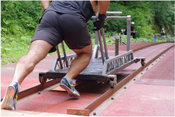 - プッシュボブスレー専用のそりを 2 名で押し、1 本の滑走タイムで順位を決定します。