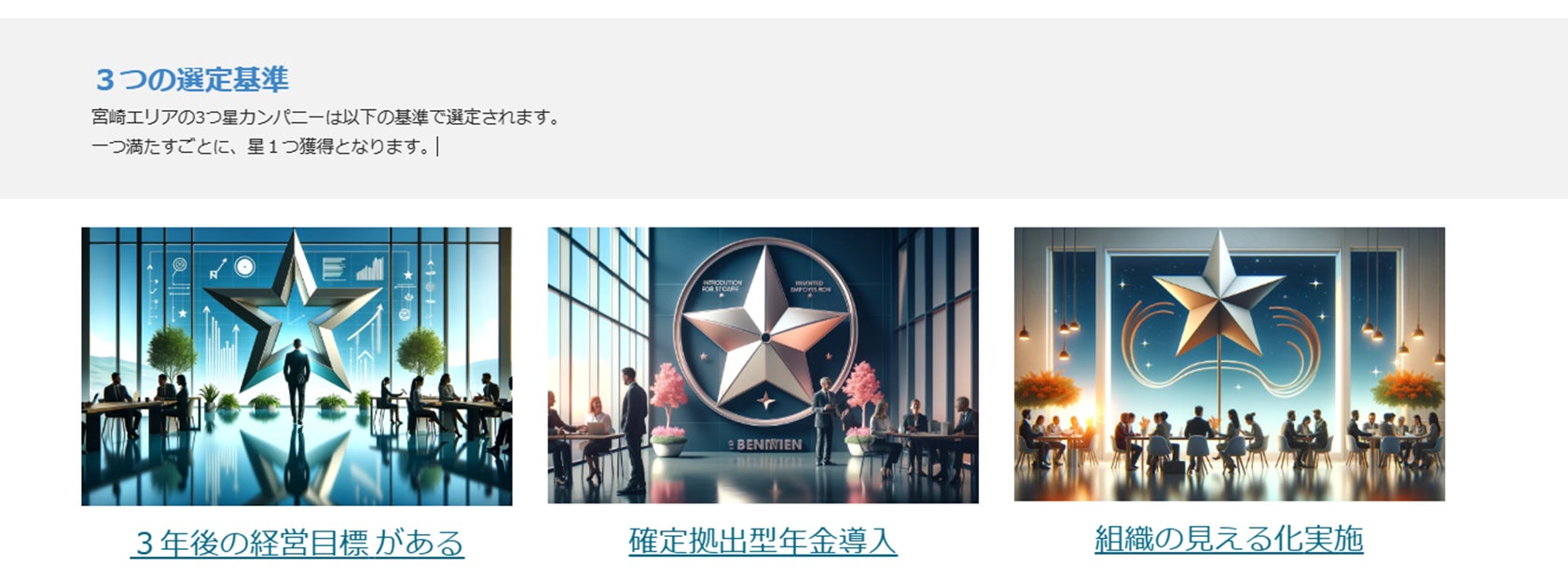 『地元の3つ星カンパニー 宮崎エリア』では、地域に根ざした企業の魅力を広く伝えることを目指し、3つの選定基準を1つでも満たしている企業を紹介しています。これにより、地域内外の人々が地元での働き方や企業の未来像に触れ、興味を持つきっかけを提供しています。