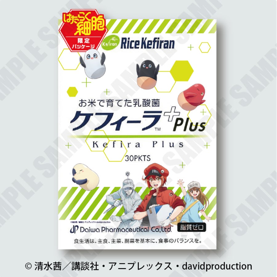 日本人の主食である"お米"を使って大和薬品の独自技術で培養された乳酸菌とオリゴ糖を配合した健康補助食品「ケフィーラPlus」が、体内のしくみがわかる超人気アニメ『はたらく細胞』の乳酸菌や赤血球のかわいいキャラクターたちが彩るコラボレーションパッケージとなって登場。すべての人の健康生活を応援します。